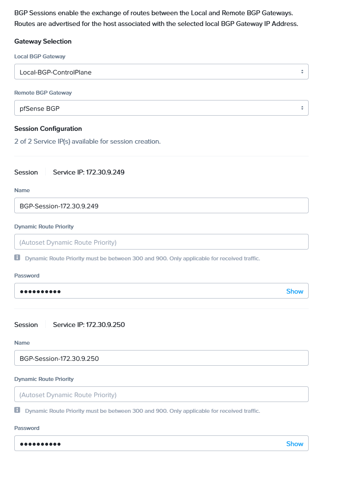 Next, I create an external Gateway Service (BGP) (from the same screen where I created the local Gateway Service):