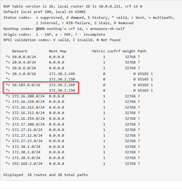 After all the configuration has been done as it should (don’t forget to set Prefix List Filter and Route Map Filters within pfSense), the connection is up and the routes get learned both on the site of FVN: