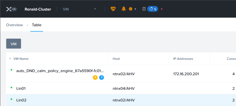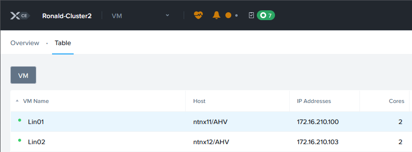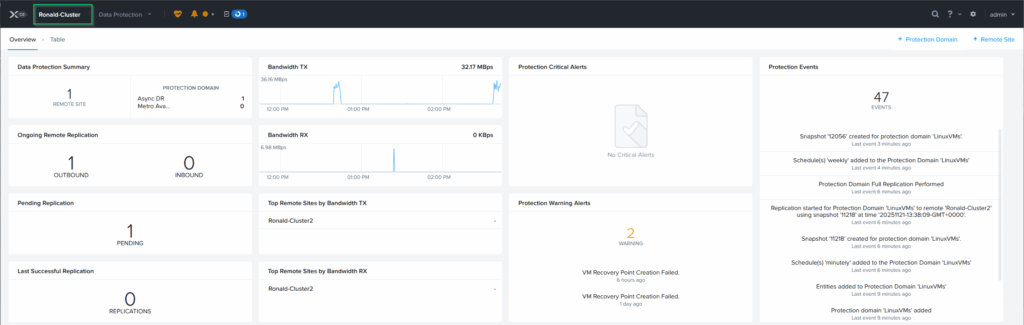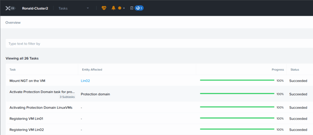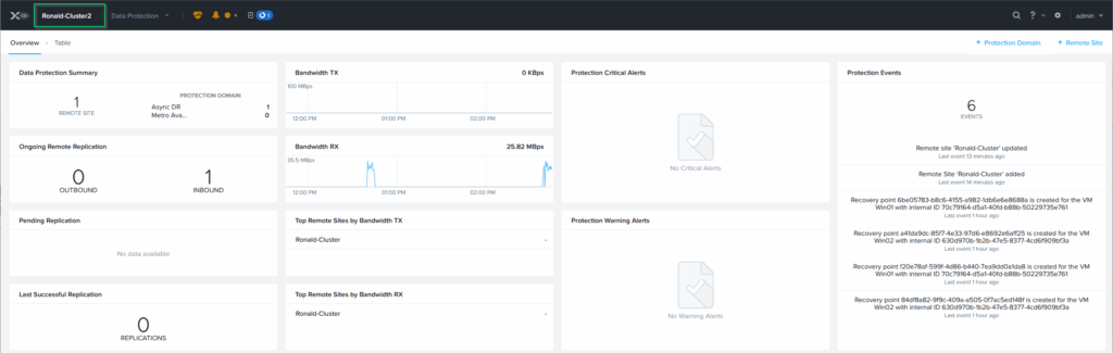 On the overview screen, I can see the results of the replication, on both Prism Elements Clusters: