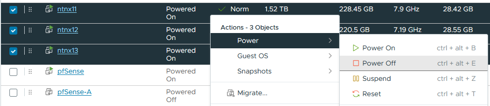 Power down the three nodes (a benefit of running nested):