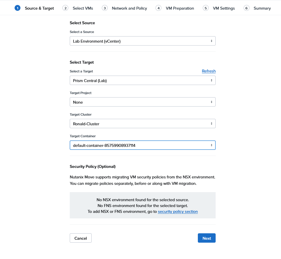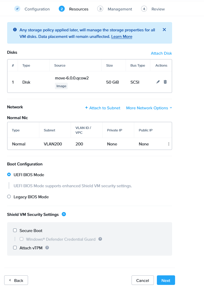 And the VM is connected to VLAN 200 (that lives in the same network as the Management components of the Nutanix environment). This is my choice, it can live anywhere where there is the right connectivity to Prism and both source and target environments.