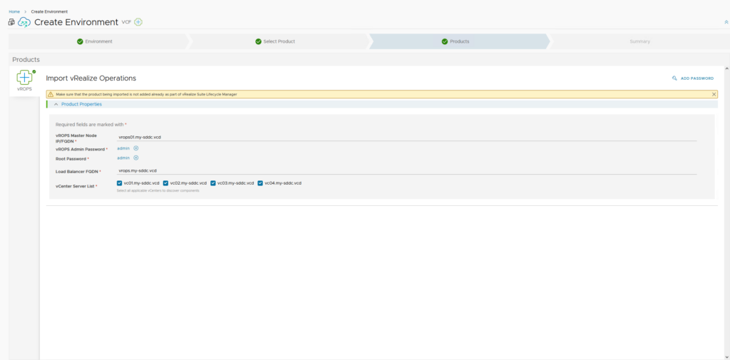 I selected all vCenter Servers, since I want this vROPs server to be there for both VCF environments.