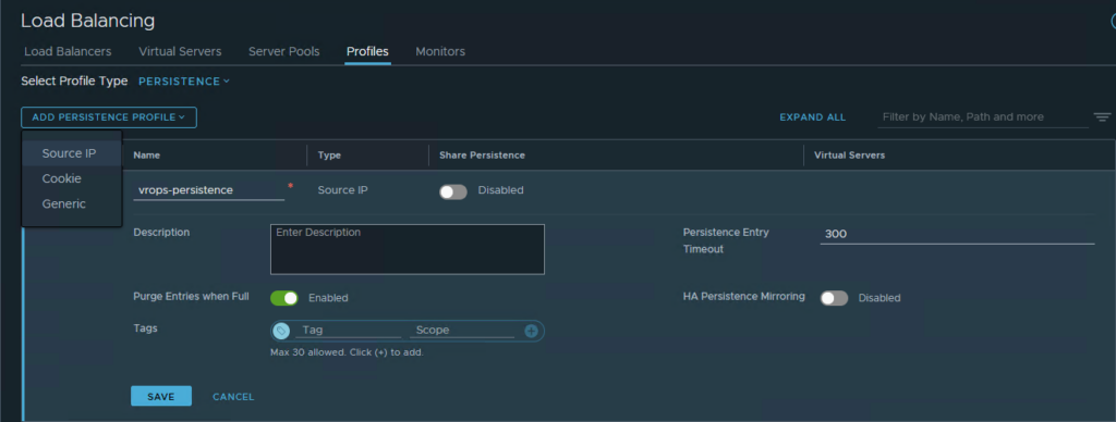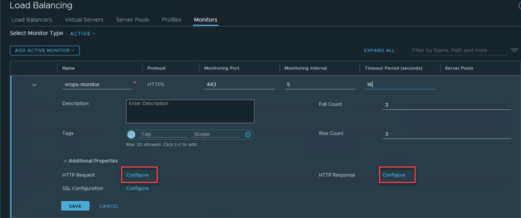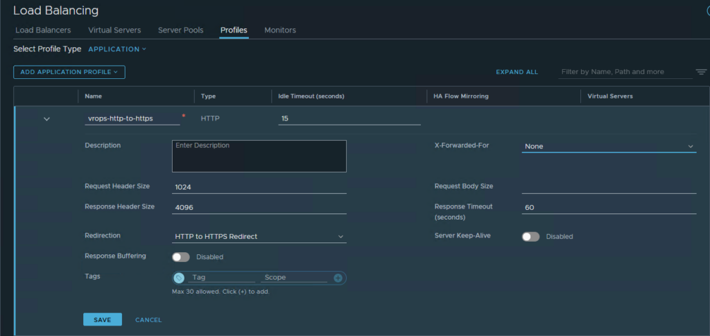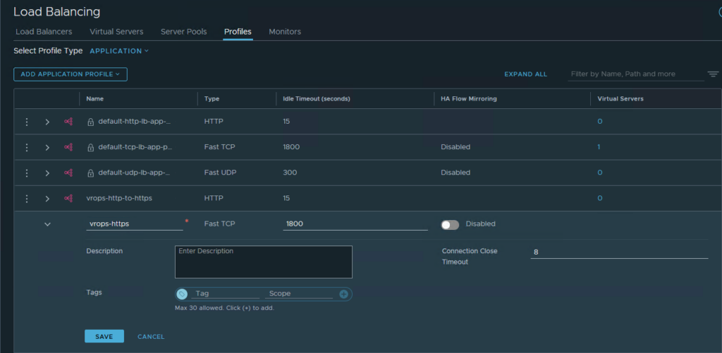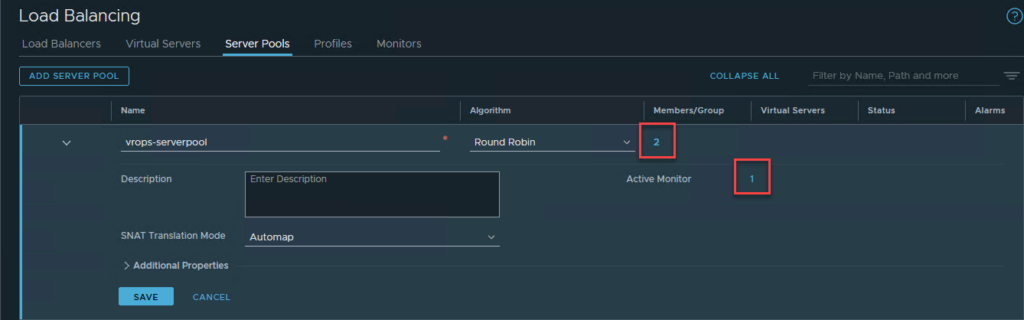 We go to the Load Balancing part of the NSX Manager (all described in https://docs.vmware.com/en/vRealize-Operations/8.10/vrops-manager-load-balancing/GUID-3C831C1A-1426-4E7A-B3EA-D85EF61F15BC.html):