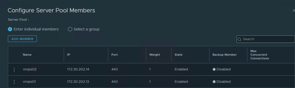 The Server Pool consists of our two members and has the Active Monitor we just created: