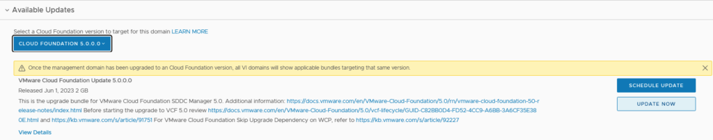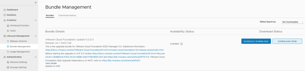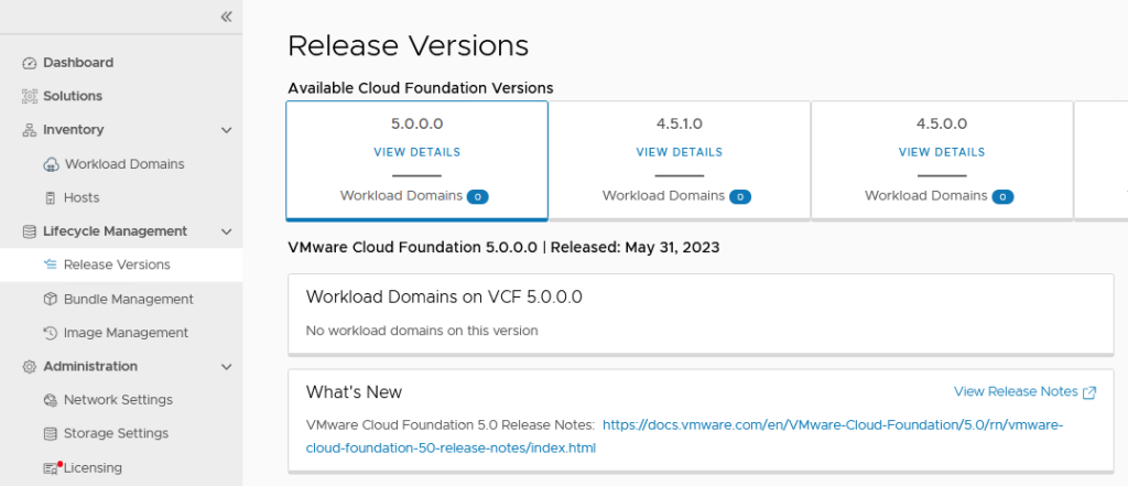- VMware Cloud Foundation Update 5.0.0.0 – Upgrade bundle