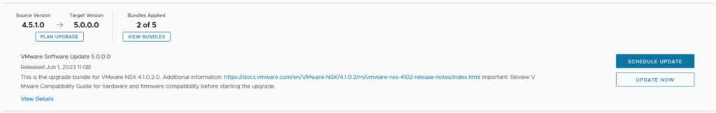 - VMware Software Update 5.0.0.0 – NSX 4.1.0.2.0