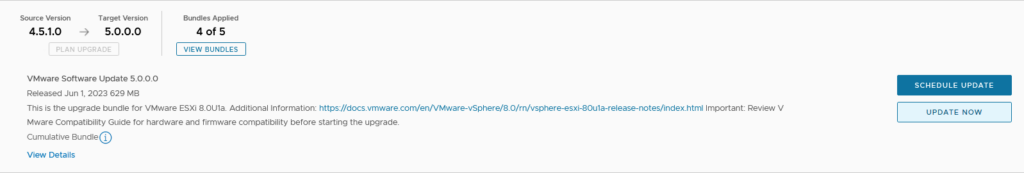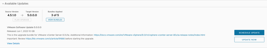 - VMware Software Update 5.0.0.0 – VMware vCenter Server 8.0U1a