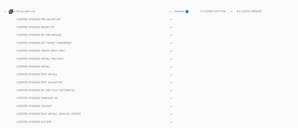 I tried to find the errors in the logs, but wasn’t able to find those easily. What I did find was that the installation of ESXi 8.0 had concluded and the host was healthy in the cluster. Before trying anything else and going with a comb through the logging, I tried to put the host in maintenance mode and do a reboot, and after that was done, the installation continued automatically and finished succesfully, for this host. The last host in the cluster then does the same. This time the method I tried before, did not work. What I did was reset the previous host from “ERROR” state to “ACTIVE” state, by using this blog: https://www.vsam.pro/sddc-manager-doesnt-want-to-start-or-retry-an-update-vcf-3-10/ (note, this is NOT SUPPORTED) and rebooted the appliance.