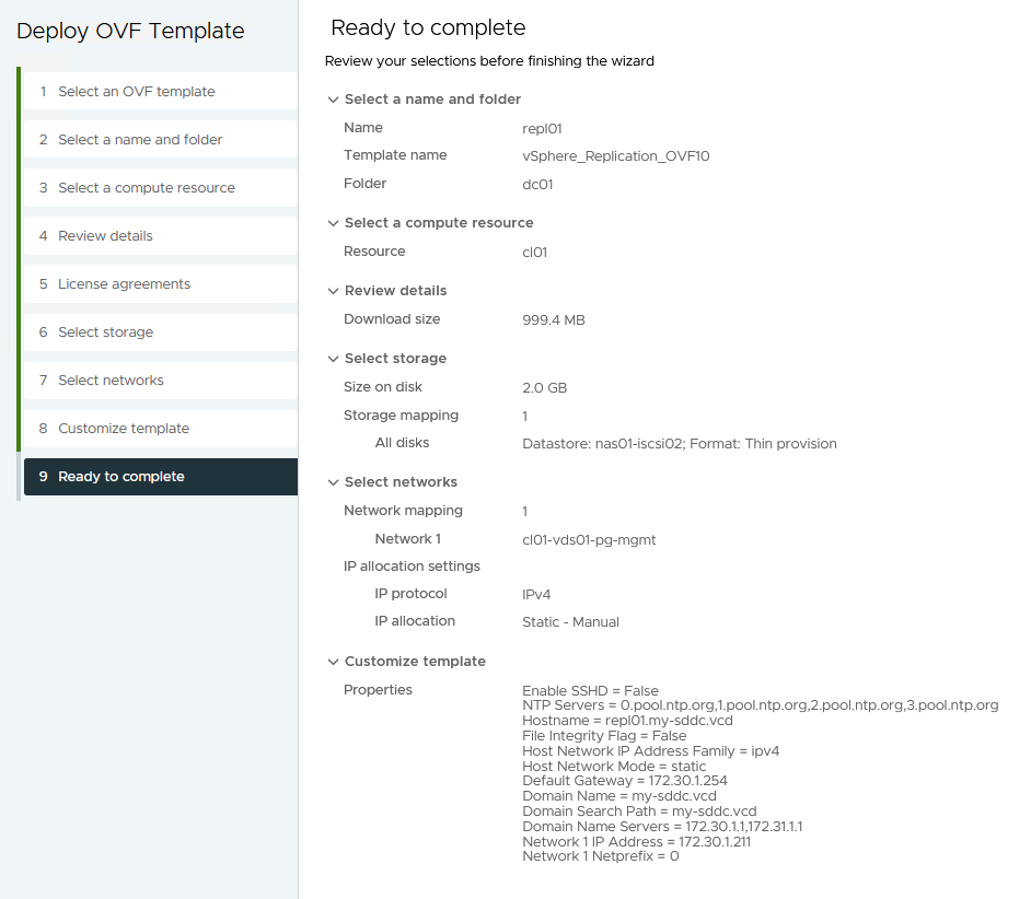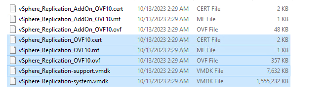 First step is install a vSphere Replication appliance, for this we deploy an OVF, selecting the following files: