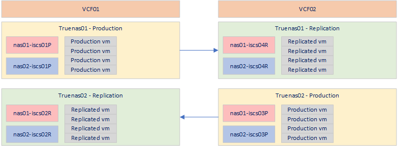 I will replicate my two VCF instances to each other. The following setup is what I will be aiming for: