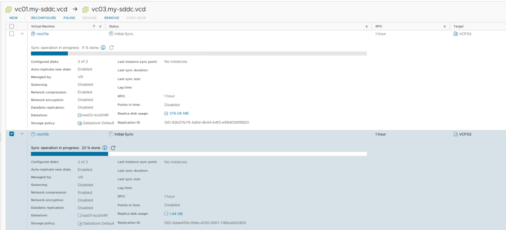 Because I have had some issues with my lab in the past (having to rebuild it a couple of times) I switched my storage to iSCSI (see https://my-sddc.net/vcf-on-vcd-iscsi-configuration/), but I also wanted to have another means of redundancy and for that I am using vSphere Replication.